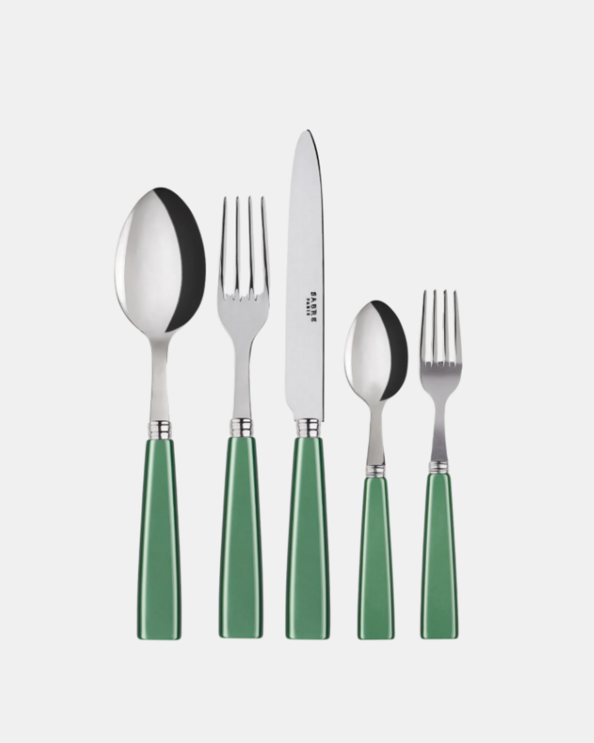 El set de 5 piezas de Sabre es el conjunto básico para crear tu colección de vajilla. Incluye una cuchara de sopa, un tenedor de cena, un cuchillo de cena, una cucharita y un tenedor pequeño.