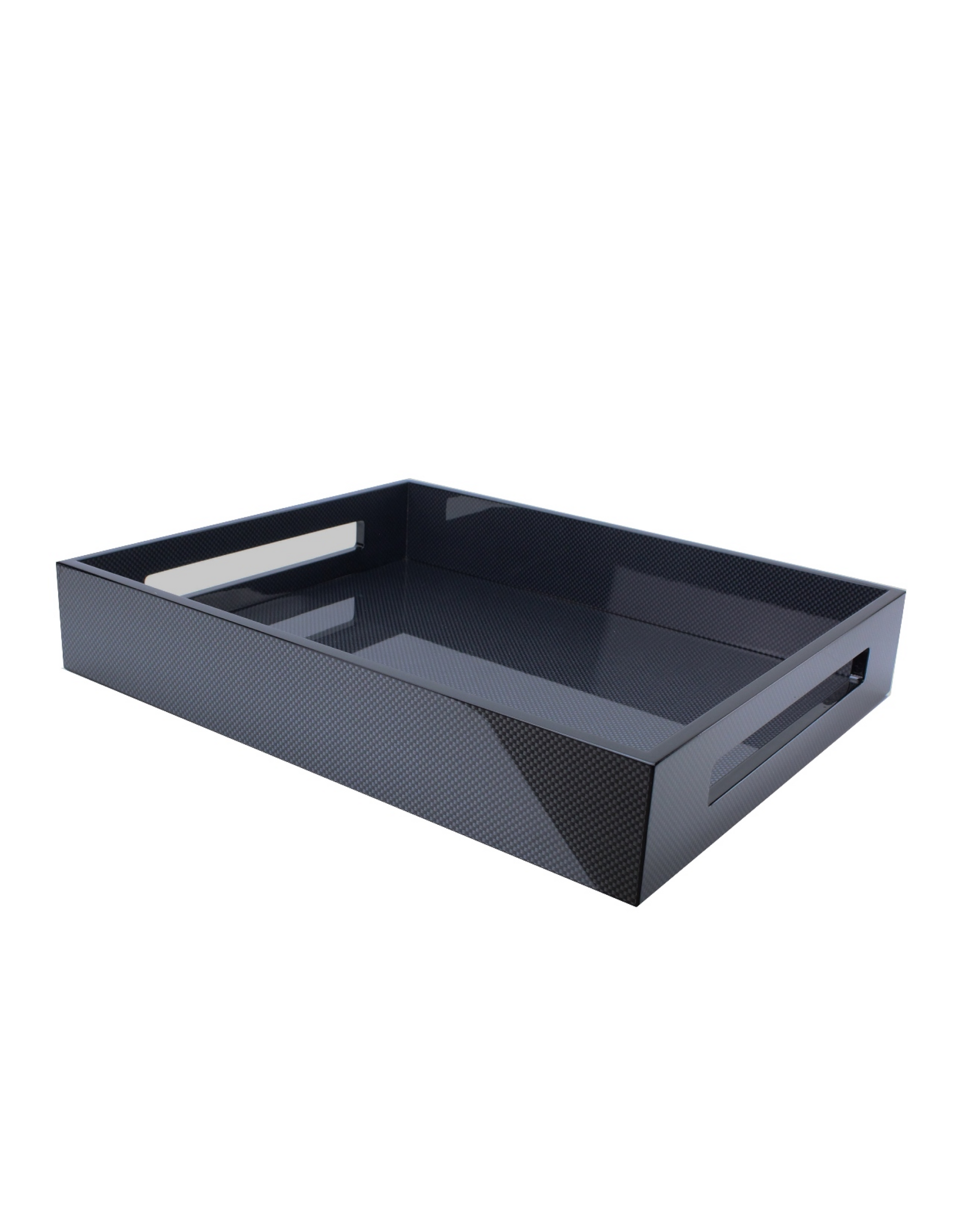 La Bandeja Ottoman de Addison Ross presenta un efecto de fibra de carbono y 20 capas de laca de alto brillo, pulida a mano entre cada capa, esta bandeja es una adición realmente impresionante a cualquier interior.